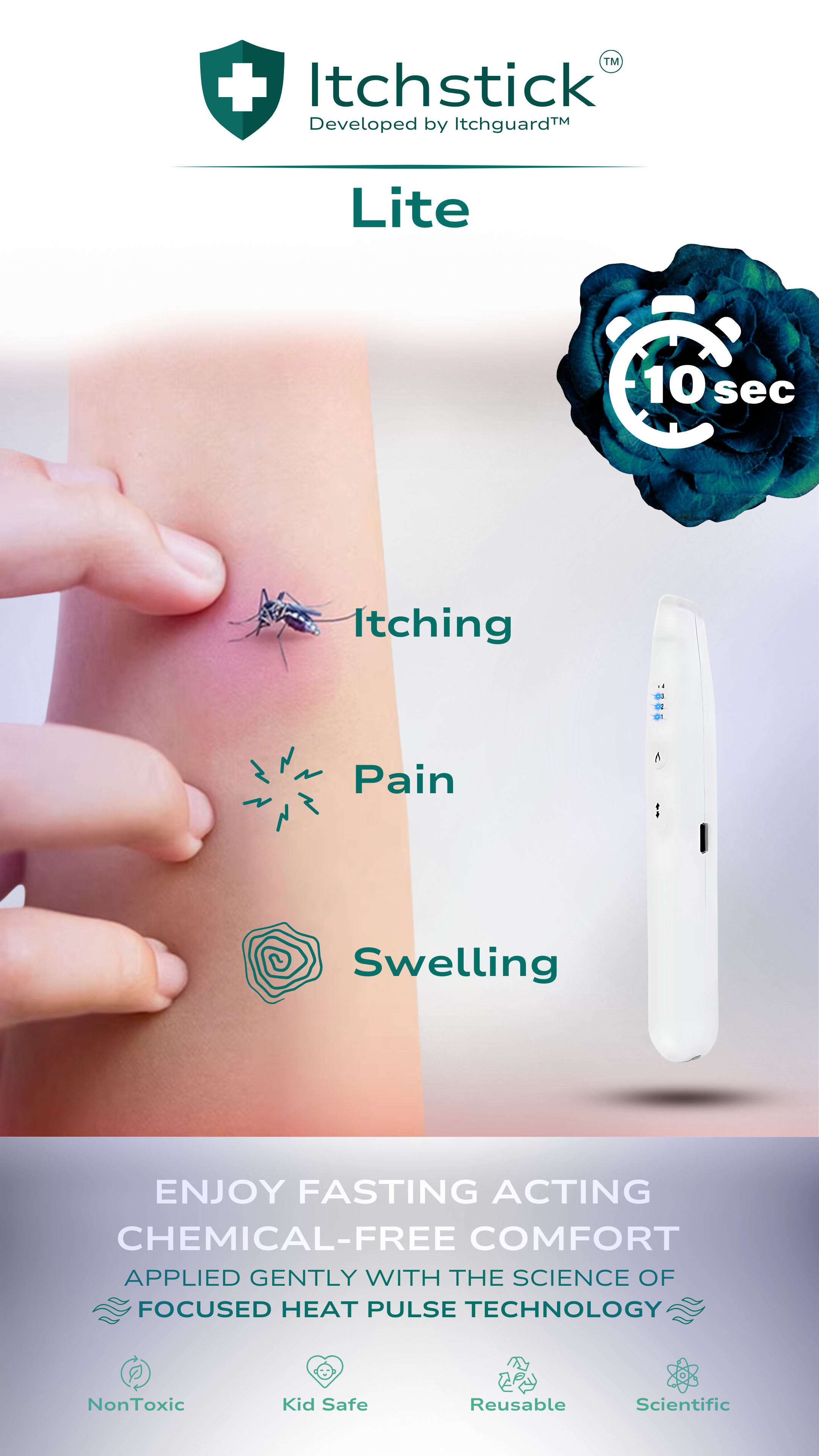 Chemical-Free Solutions: Avoid harsh chemicals often found in sprays and creams. Itchguard™ relies on advanced technologies like controlled heating, ultrasonic frequencies, and UV-light attraction to offer safe, eco-friendly alternatives.