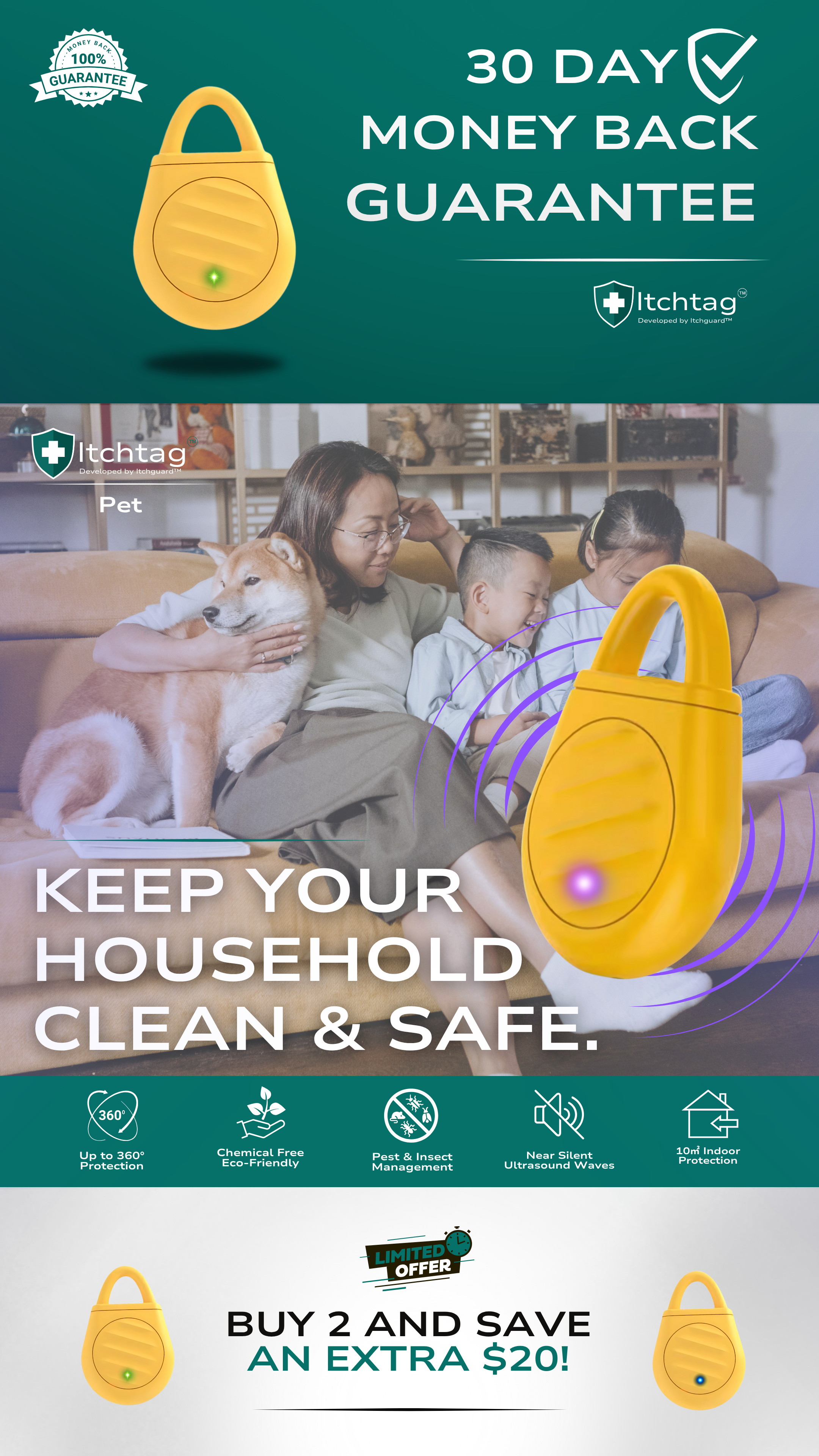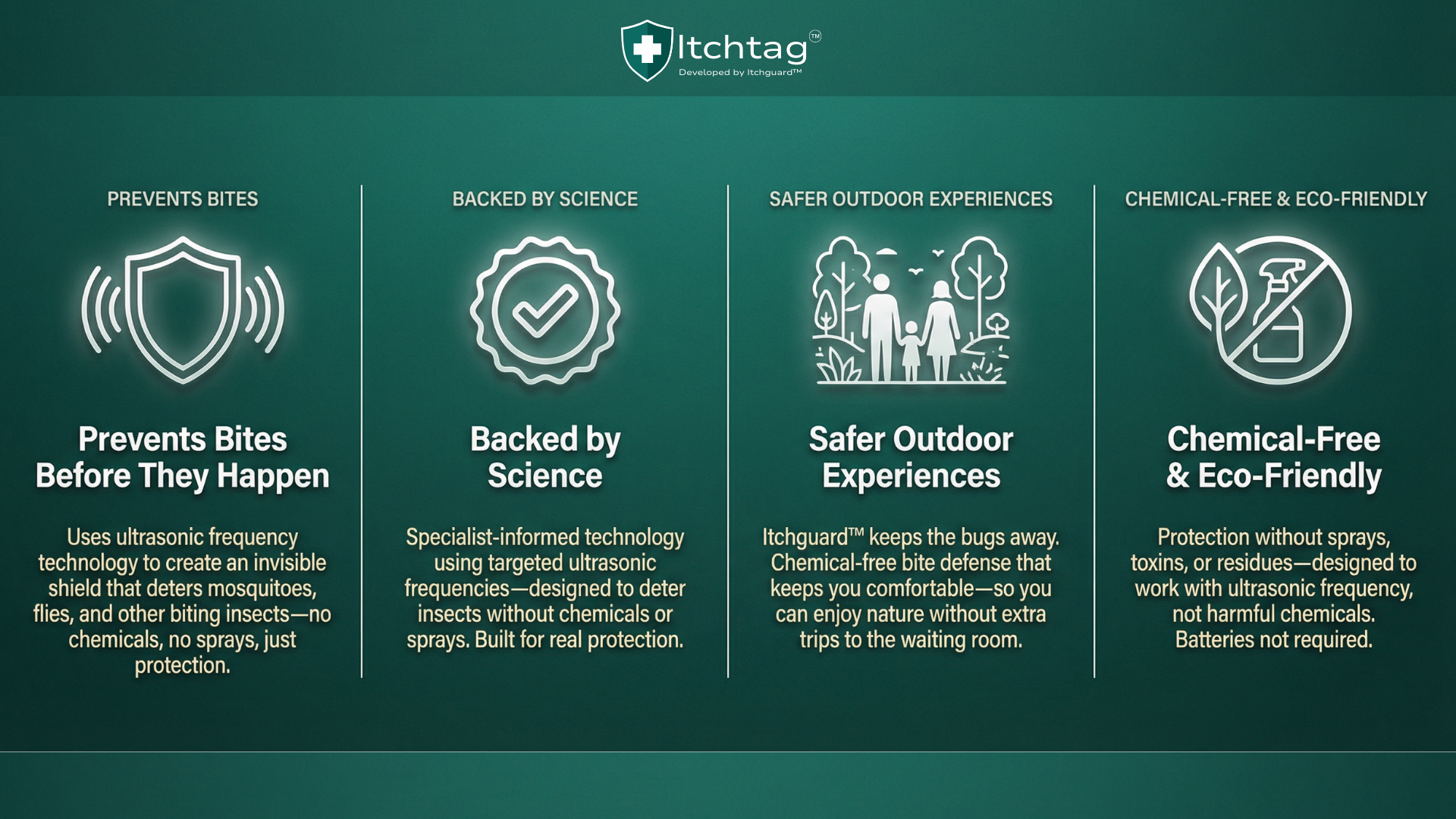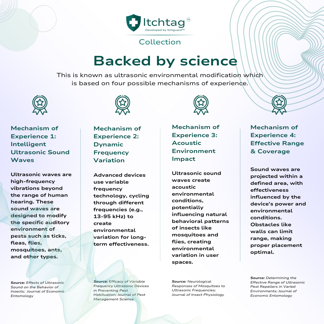 Chemical-Free Solutions: Avoid harsh chemicals often found in sprays and creams. Itchguard™ relies on advanced technologies like controlled heating, ultrasonic frequencies, and UV-light attraction to offer safe, eco-friendly alternatives.